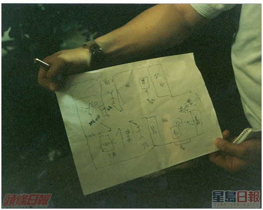 星岛日报刊登的警方展示手绘的现场尸体分布图: