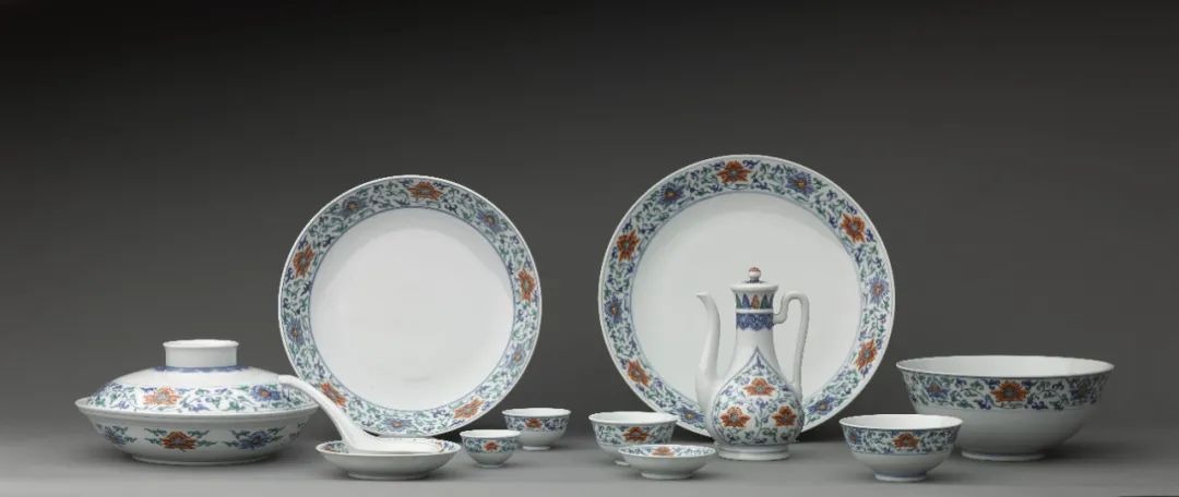 - 祝大年(设计)斗彩牡丹穿枝纹饰中餐具 1953年 中央工艺美术学院藏