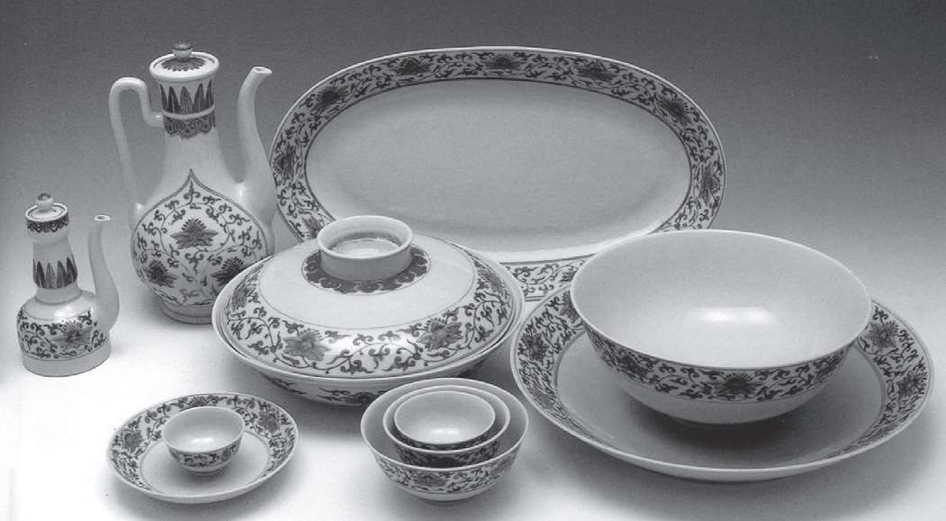 - 设计方案包含中餐具、外宾西餐具两大体系,并对器型、花饰、釉色有明确指标,原料配方、实验室检测等工艺实现现代化。
