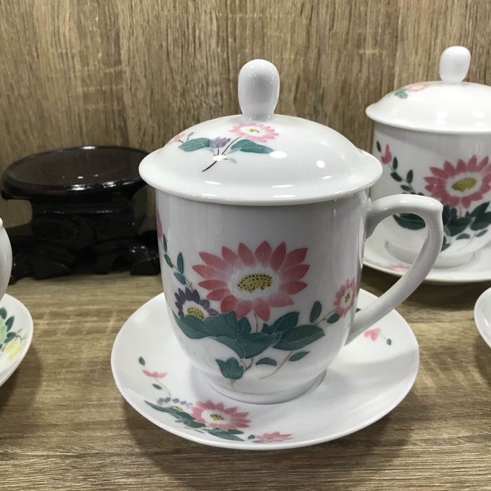 名称:景德镇文革厂货釉中彩手工手绘葵花办公茶杯年代:文革时期特点:手工绘制的釉中彩茶杯,葵花图案寓意吉祥,体现了釉中彩技术在日常用品中的应用