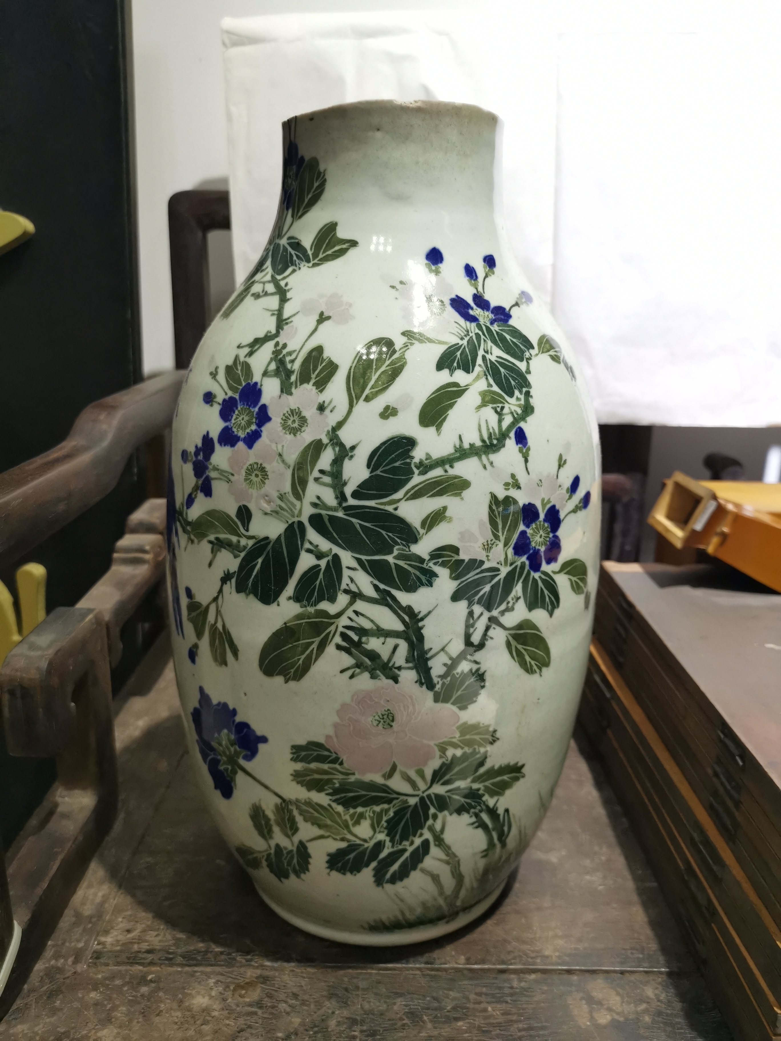 名称:清晚民国醴陵釉下彩花瓶年代:清晚民国时期特点:醴陵釉下彩是中国近代著名的釉下彩瓷种,色彩丰富,图案精美,体现了釉下彩技术的成熟发展