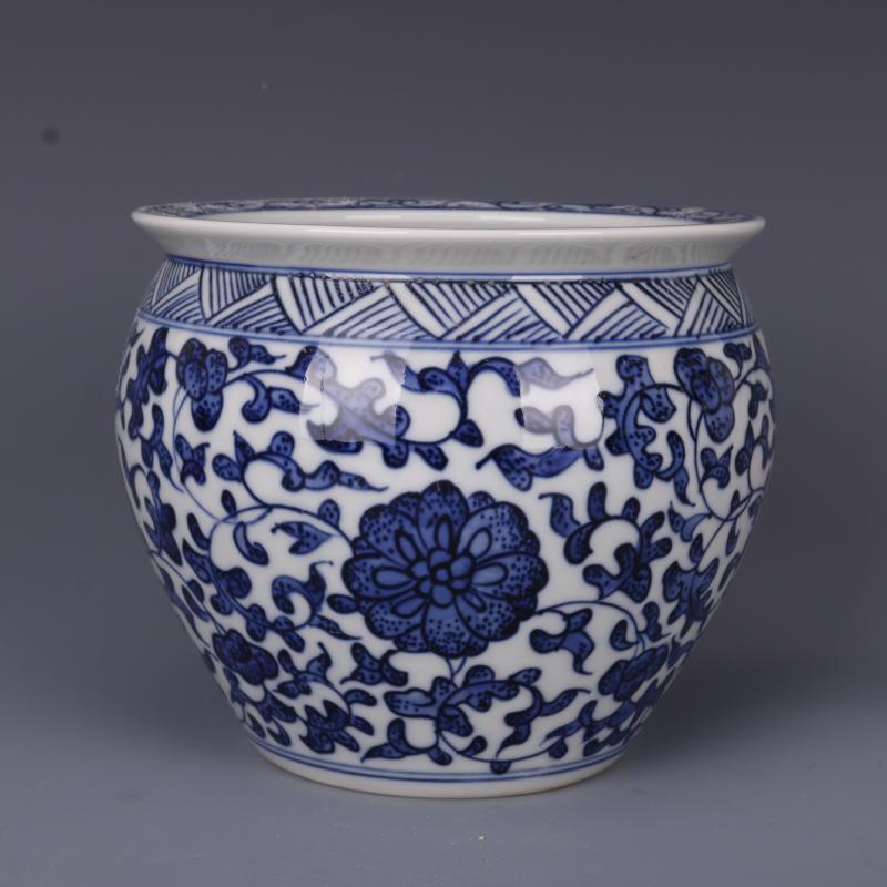 图片说明: 清雍正青花缠枝莲纹水洗,以缠枝莲为主要纹样。缠枝莲纹象征着纯洁和永恒,采用连续不断的缠绕形式,寓意生生不息。青花发色淡雅清新,体现了雍正时期青花瓷的典型风格。