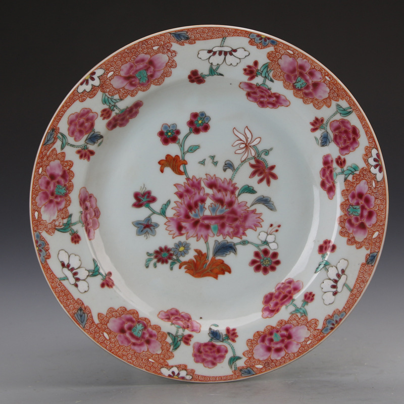 图片说明: 清外销瓷粉彩牡丹纹盘,专为海外市场制作。盘心绘有盛开的牡丹纹样,色彩丰富艳丽,体现了清代外销瓷的典型特征。这类瓷器不仅传播了中国文化,也促进了中外文化交流。