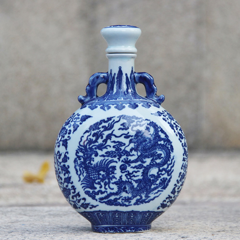 图 3:景德镇青花瓷扁瓶,采用传统青花技艺制作,展现了精湛的绘画和造型工艺