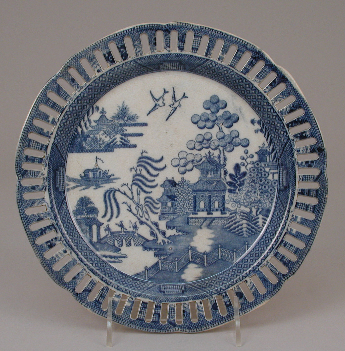 英国科学博物馆收藏的一件丝网印刷示范瓷砖,记录了这一阶段:在方形砖上,柳景纹借由网目和刮刀被重复。