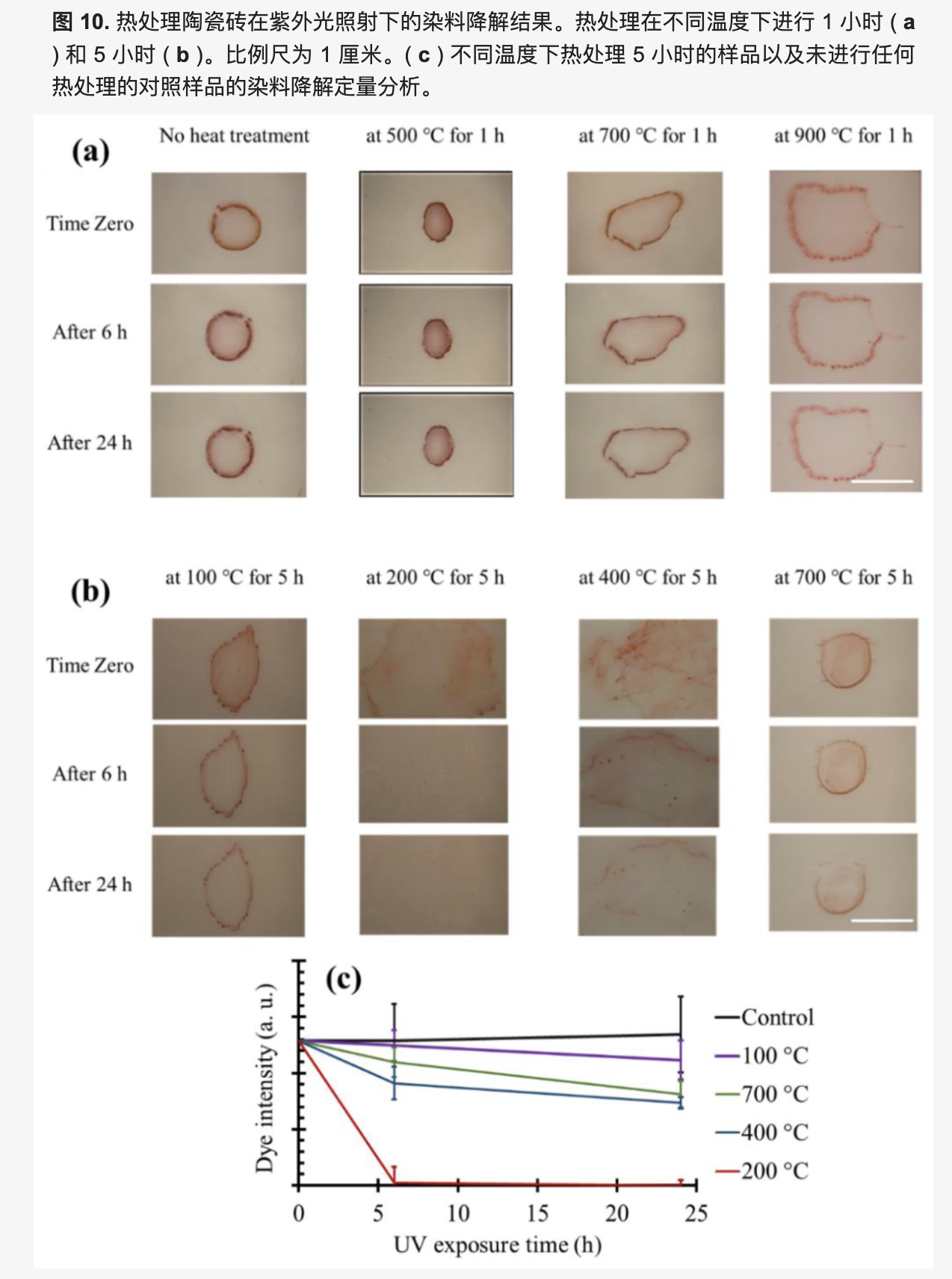 显示涂层样品在UV下褪色显著快于对照组,直观证明光催化自洁机理。