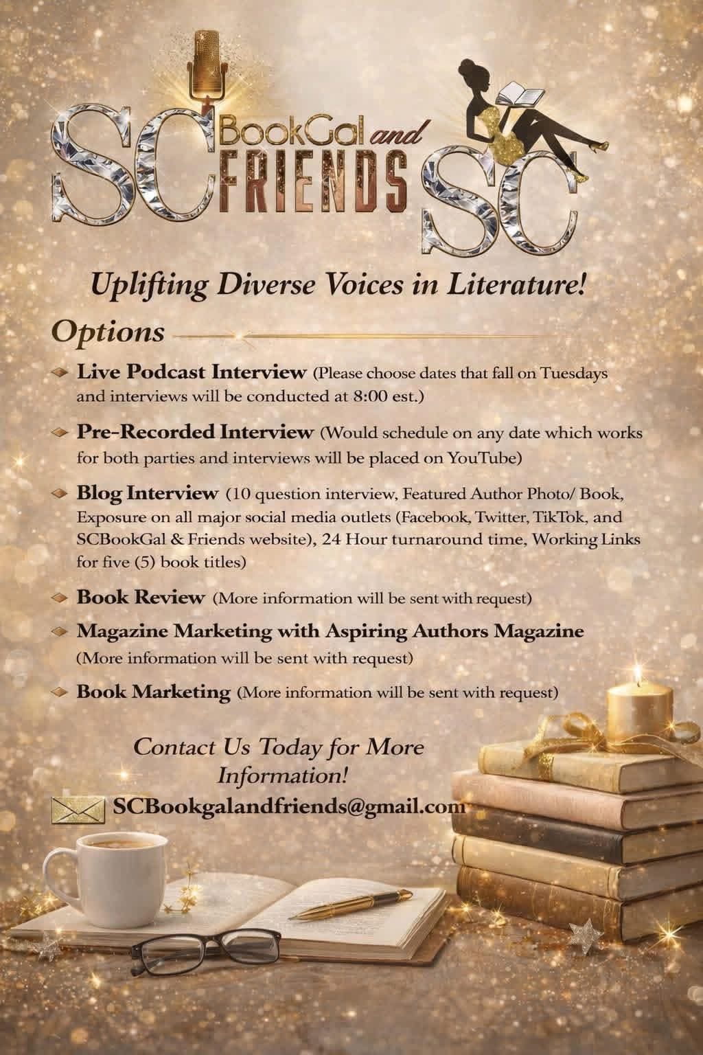 - Author Support: The platform offers mentorship and hands-on marketing support aimed specifically at underrepresented and aspiring writers. Whether you’re polishing your debut or launching your next masterpiece, SC BookGal is there for you.