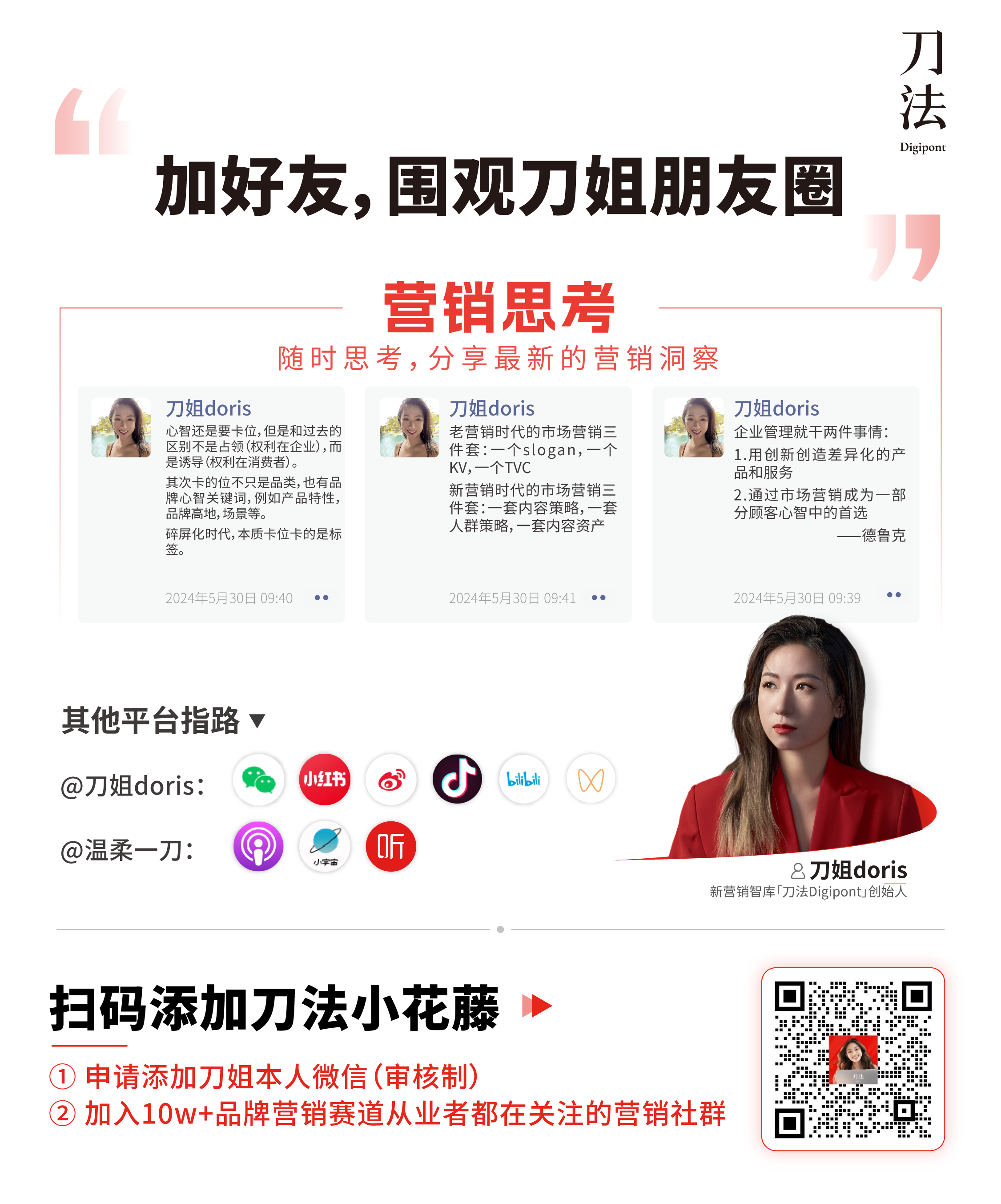咨询、培训等业务合作,请联系zhiku@digipont.com 「刀法智库」独家人群战略方法论帮你打通战略战术战役,让生意有效率可持续,实现向超级品牌的跃迁。