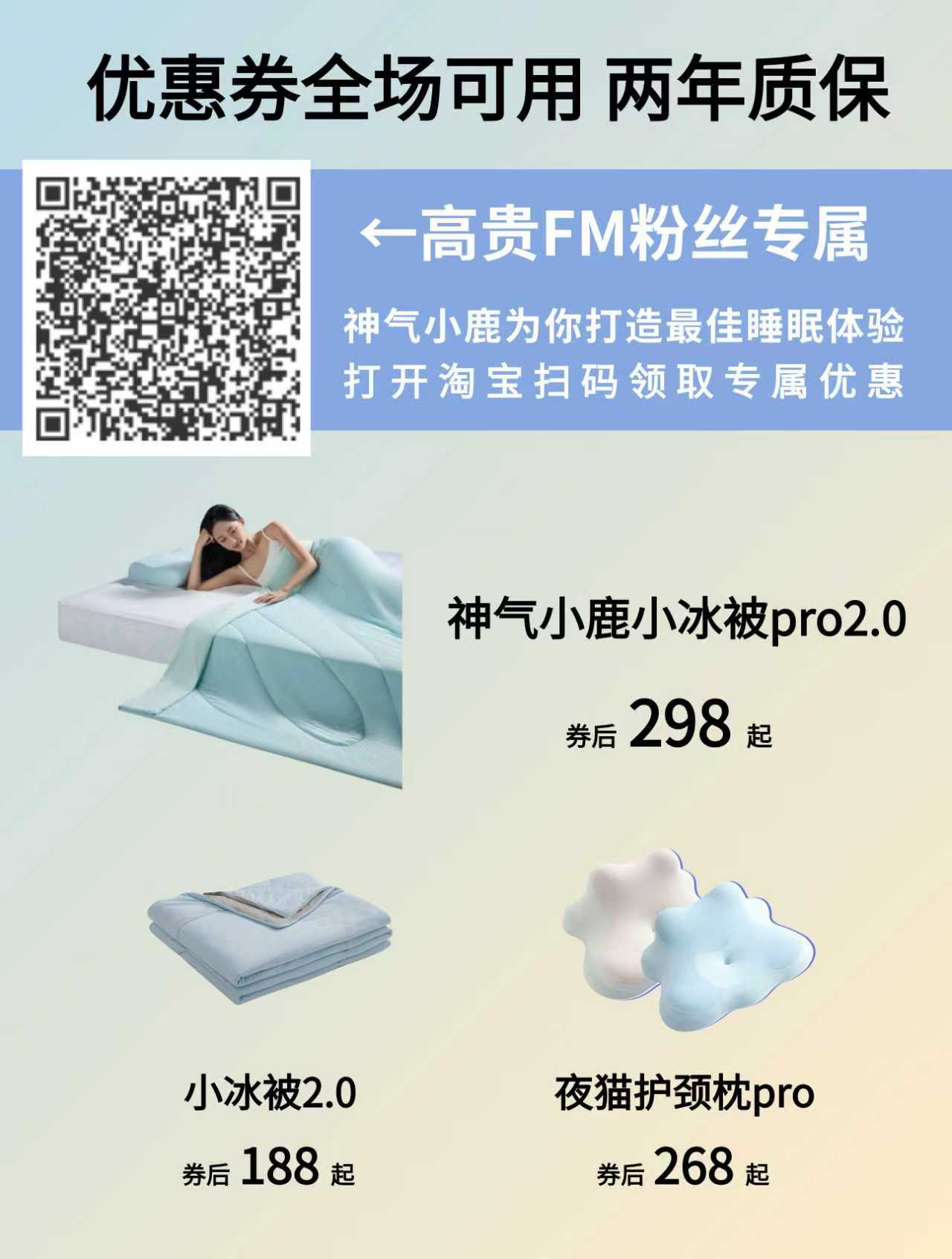小尺寸的小冰被2.0券后只要100多,性价比更高。PRO款双面凉感,凉感更高,质感更舒服,也很适合送人,趴睡枕PRO只要200多,神气小鹿的产品性价比都很高,趴睡枕还送33天试睡,两年换新,七天无理由。